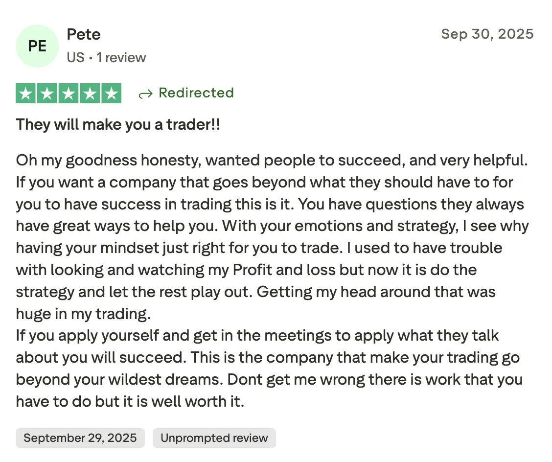 We offer comprehensive support including training videos, live Q&A sessions, coaching one-on-ones, and access to our community of traders. Our team are known for their quick response times and genuine desire to help you succeed. Many customers praise our exceptional support in their reviews.