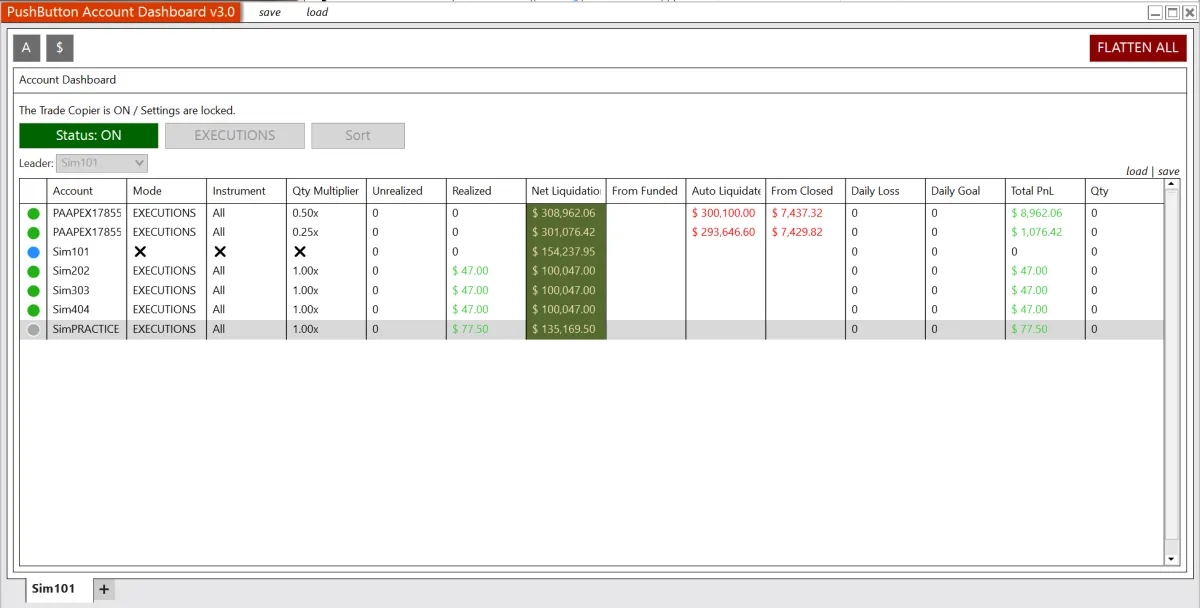 The Trade Copier and Account Dashboard lets you manage and copy trades across unlimited funded, personal, or simulated accounts from one place, with built-in risk controls to protect your capital. See critical metrics at a glance, including P&L, account status, distance to funding, and breach thresholds, so you always know where you stand. It’s a powerful, all-in-one system designed to keep multi-account trading simple, controlled, and scalable.